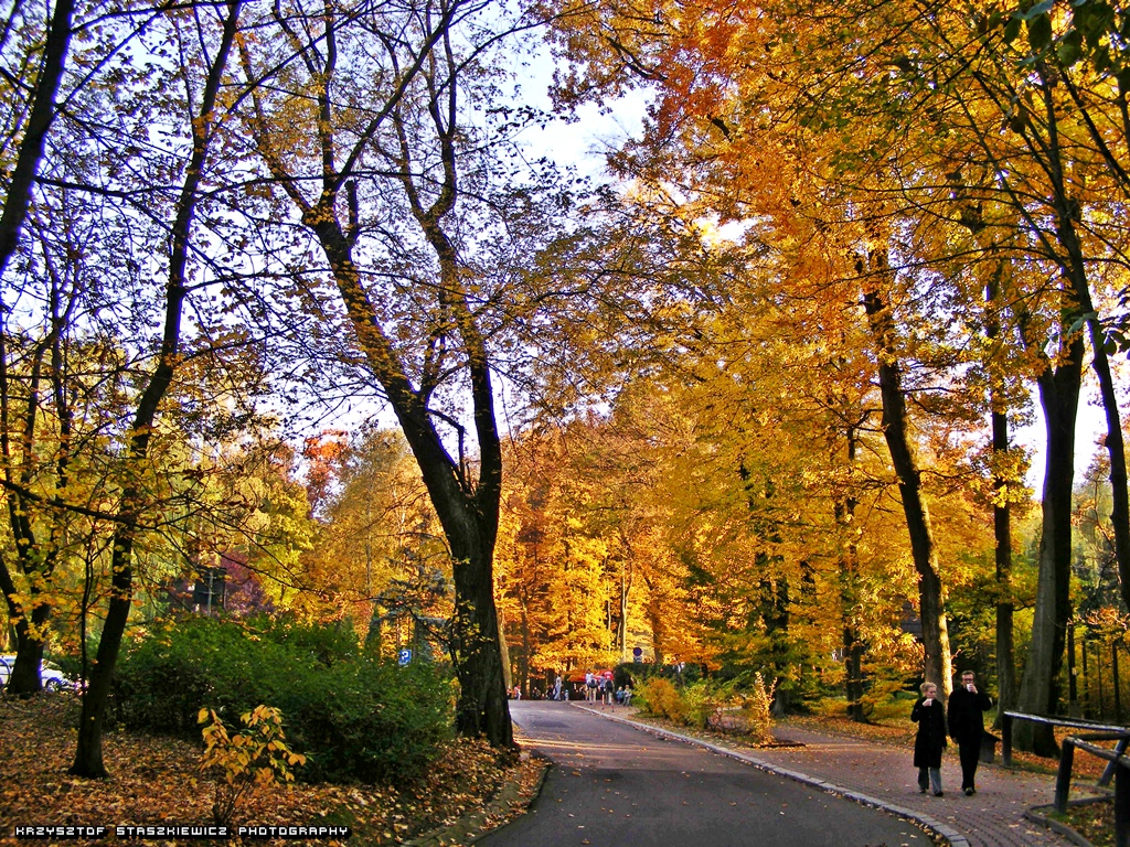 Aleja Wędrowników w czasie pięknej złotej jesieni.