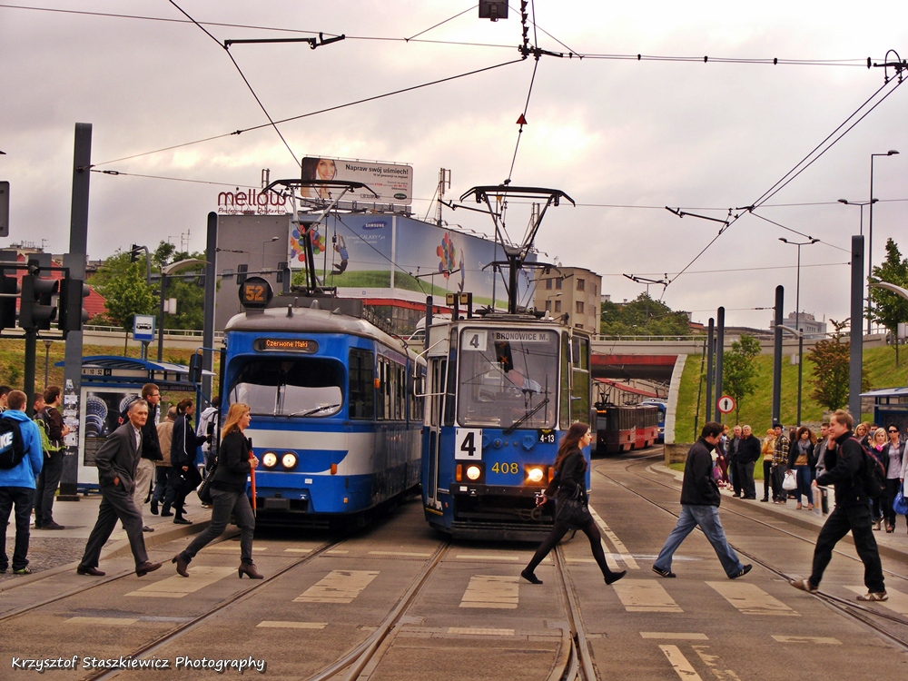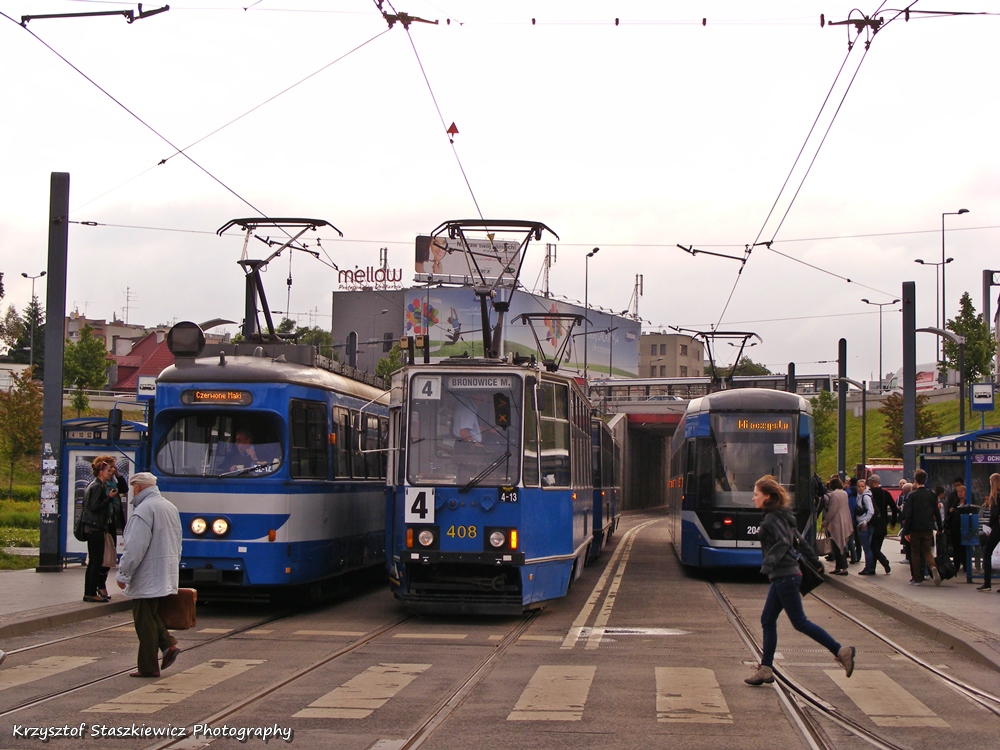 Dziś (23.05) ok. godziny 7:15 doszło do złamania iglicy, a w zasadzie dwóch iglic na jednej zwrotnicy, na Rondzie Mogilskim. W wyniku awarii motorniczy linii 20 postanowił przerwać przejazd przez łuk (i bardzo duża pochwała dla niego za to, że nie próbował przejazdu) w wyniku czego zostały zablokowany ruch tramwajów w relacjach: Tunel – Al. Powstania Warszawskiego (w przeciwną stronę ruch normalny), Mogilska – we wszystkich relacjach, Al. Powstania Warszawskiego – Lubicz (w przeciwną stronę ruch normalnie). W momencie kulminacyjnym w zatrzymaniu stało ok. 15 tramwajów (!!!). Ruch został wznowiony ok. 7:40