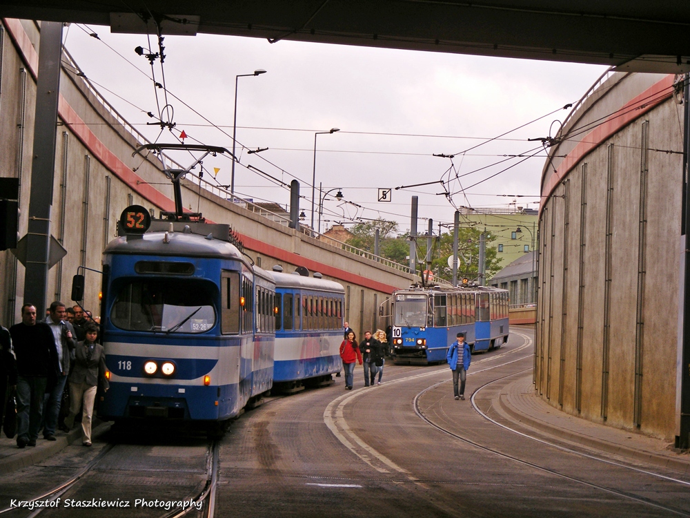 Kolejne składy, tym razem stojące od strony ul. Lubicz. Chwilę później podjęto decyzje o przekierowaniu linii 52, 10 i 4 na objazd przez al. Pokoju.