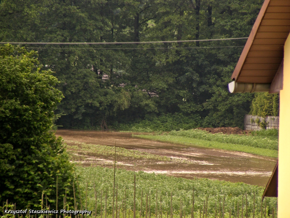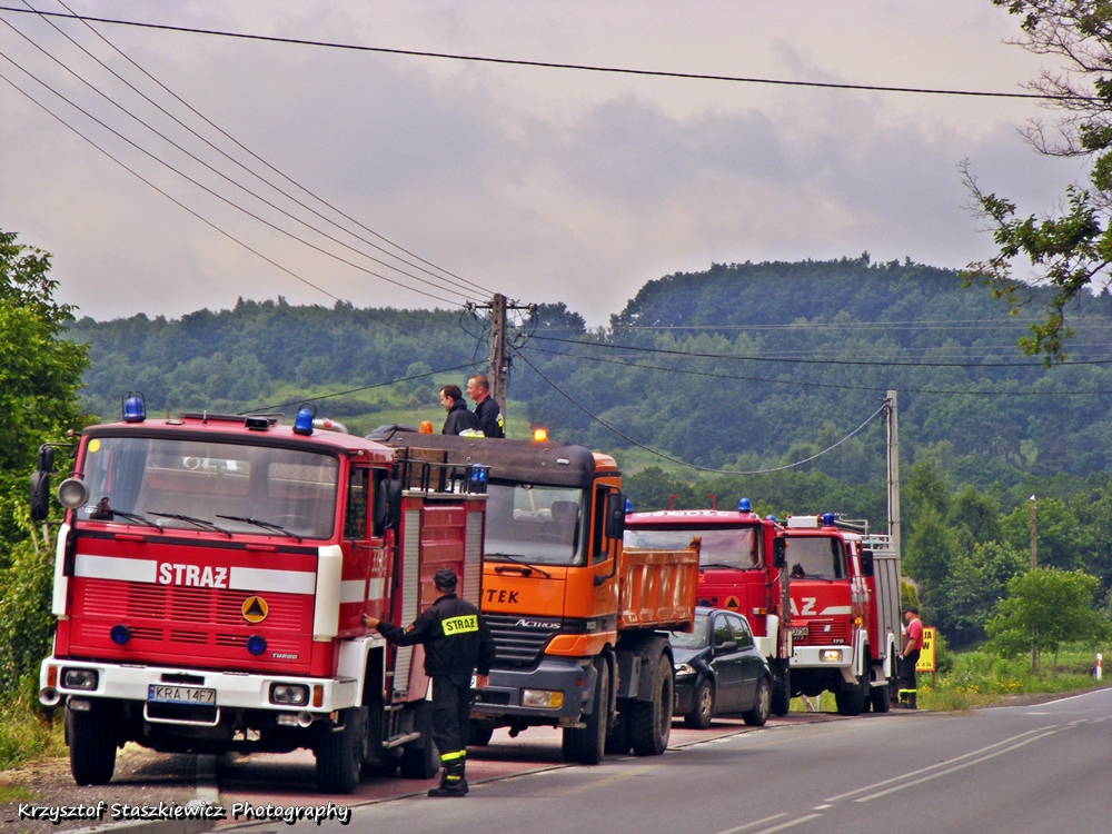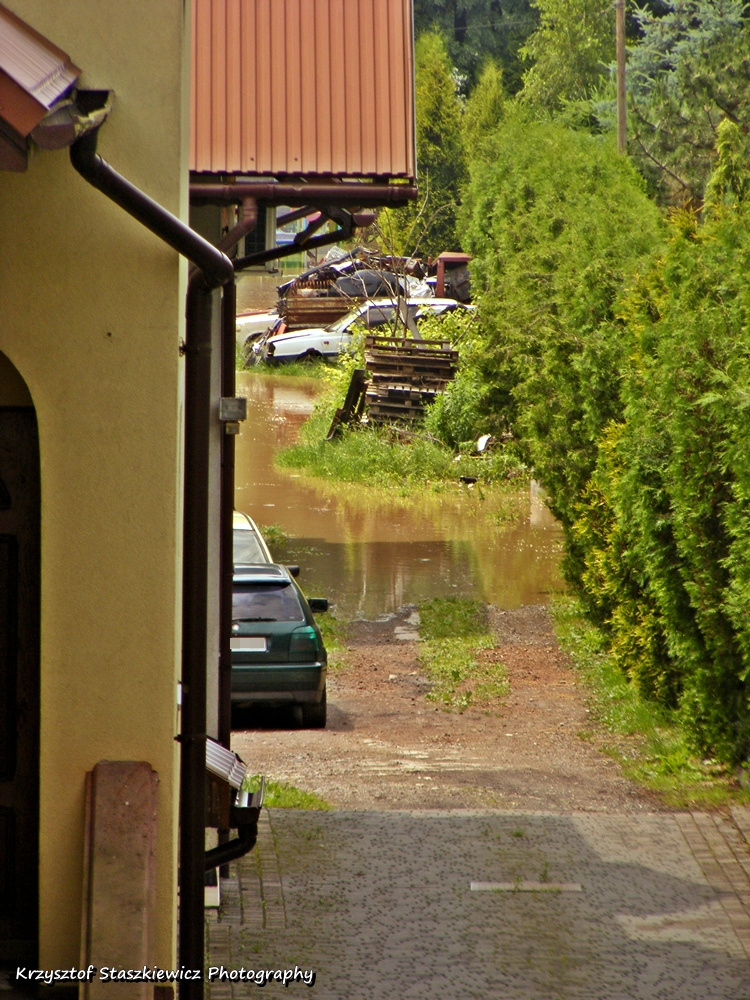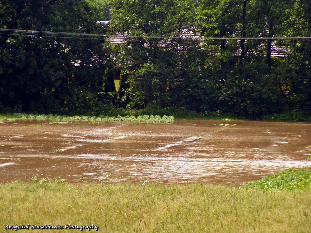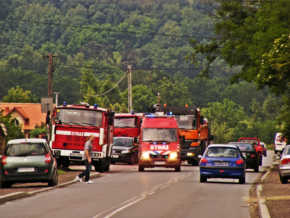 Dziś w wyniku oberwania chmury w Gminie Skała i Gminie Sułoszowa doszło do znacznego wzrostu poziomu wody w rzece Białucha (Prądnik). W połączeniu z mocnymi opadami deszczu jakie występowały rano, doszło do wylania rzeki w praktycznie wszystkich miejscowościach przez jakie ona przepływa. Sytuacja była i jest bardzo ciężka, zalane zostało wiele posesji, zalana jest droga w Korzkwi, ul. Bankowa i Rzyczyska w Zielonkach, ul. Na Błonie i Galicyjska w Pękowicach, oraz ul. Na Kąty w Trojanowicach, zalane jest też wiele pól. Sytuacja krytyczna jest w Ojcowie, gdzie zerwało mostki, oraz na Prądniku Korzkiewskim. Z wodą walczy wiele jednostek Ochotniczej Straży Pożarnej (z tego co zauważyłem: OSP Zielonki, OSP Trojanowice, OSP Giebułtów, OSP Wielka Wieś, OSP Bosutów, OSP Więcławice, jednak z całą pewnością jest ich dużo więcej).