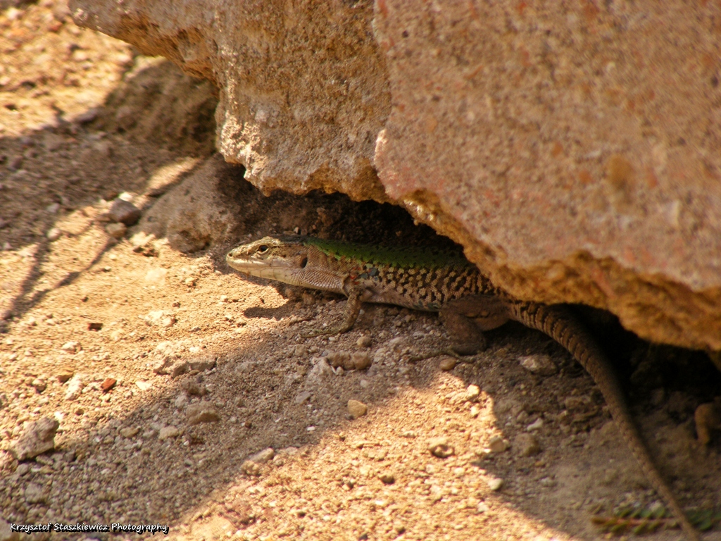 Jaszczurka, ukrywająca się upałem w ruinach Herkulanum.