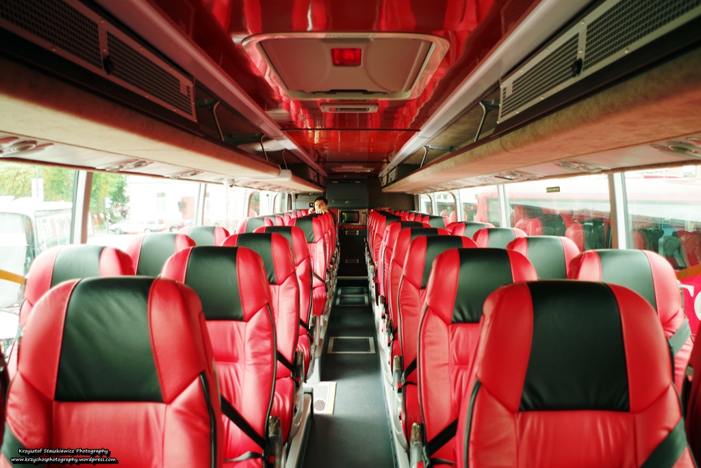 W środku autokaru jest znacznie więcej miejsca na nogi, niż w PolskimBusie. Również siedzenia są znacznie wygodniejsze.