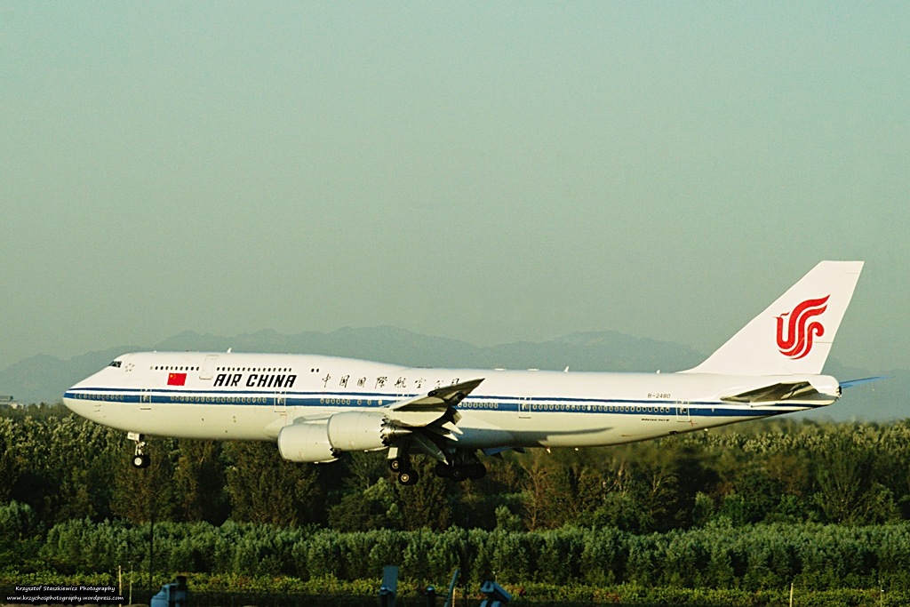 JumboJet tuż przed przyziemieniem na lotnisku w Pekinie.