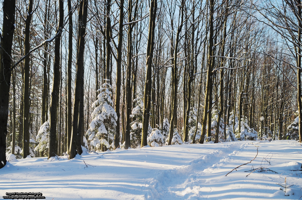 Zimowy krajobraz na szlaku Szczawa – Turbacz.