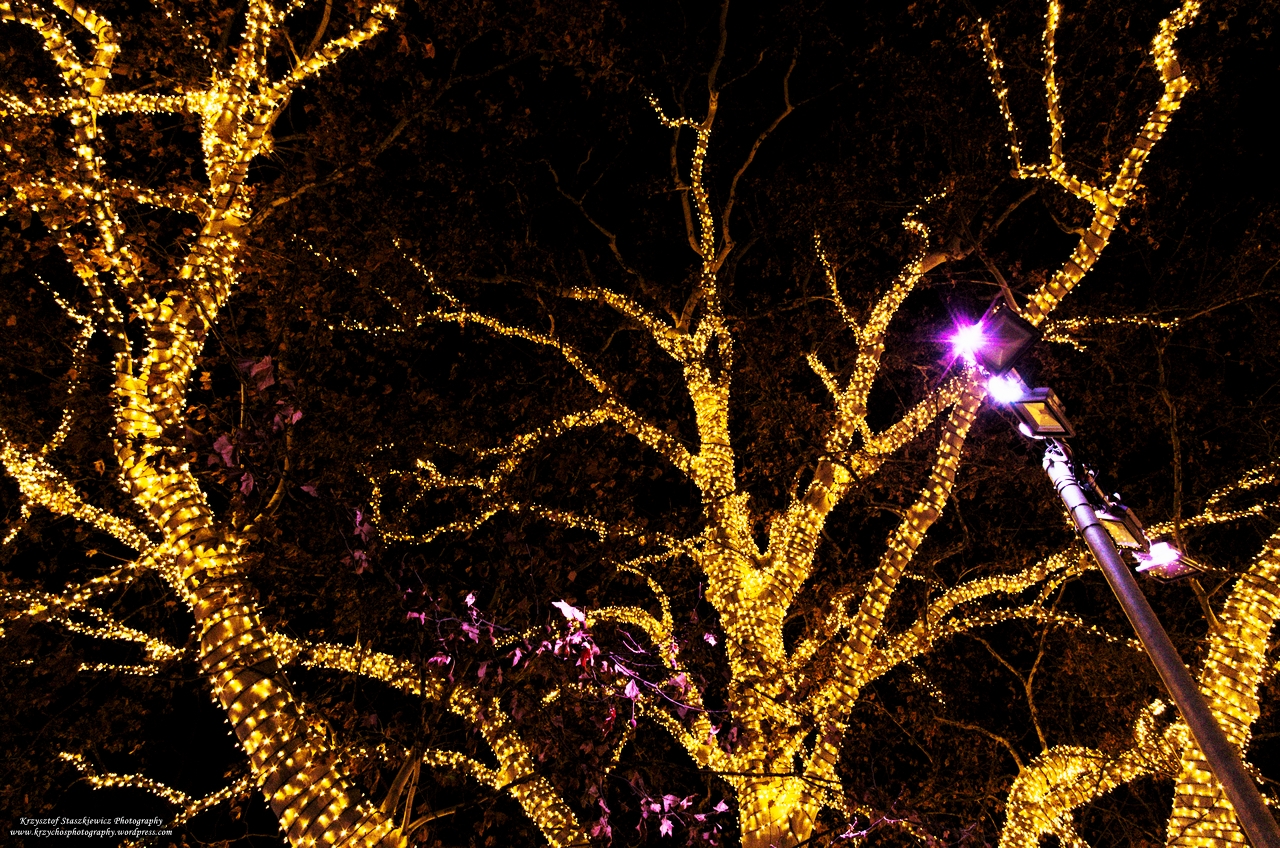 Świątecznie oświetlone drzewa