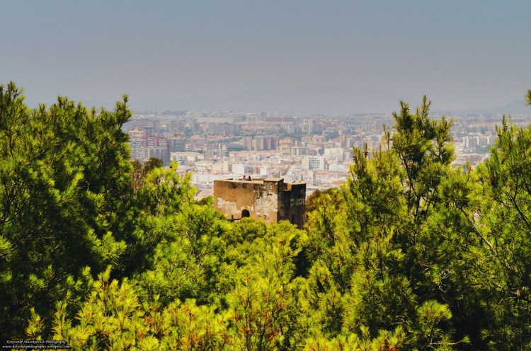 Ruiny zamków Gibralfaro, a w tle Malaga.