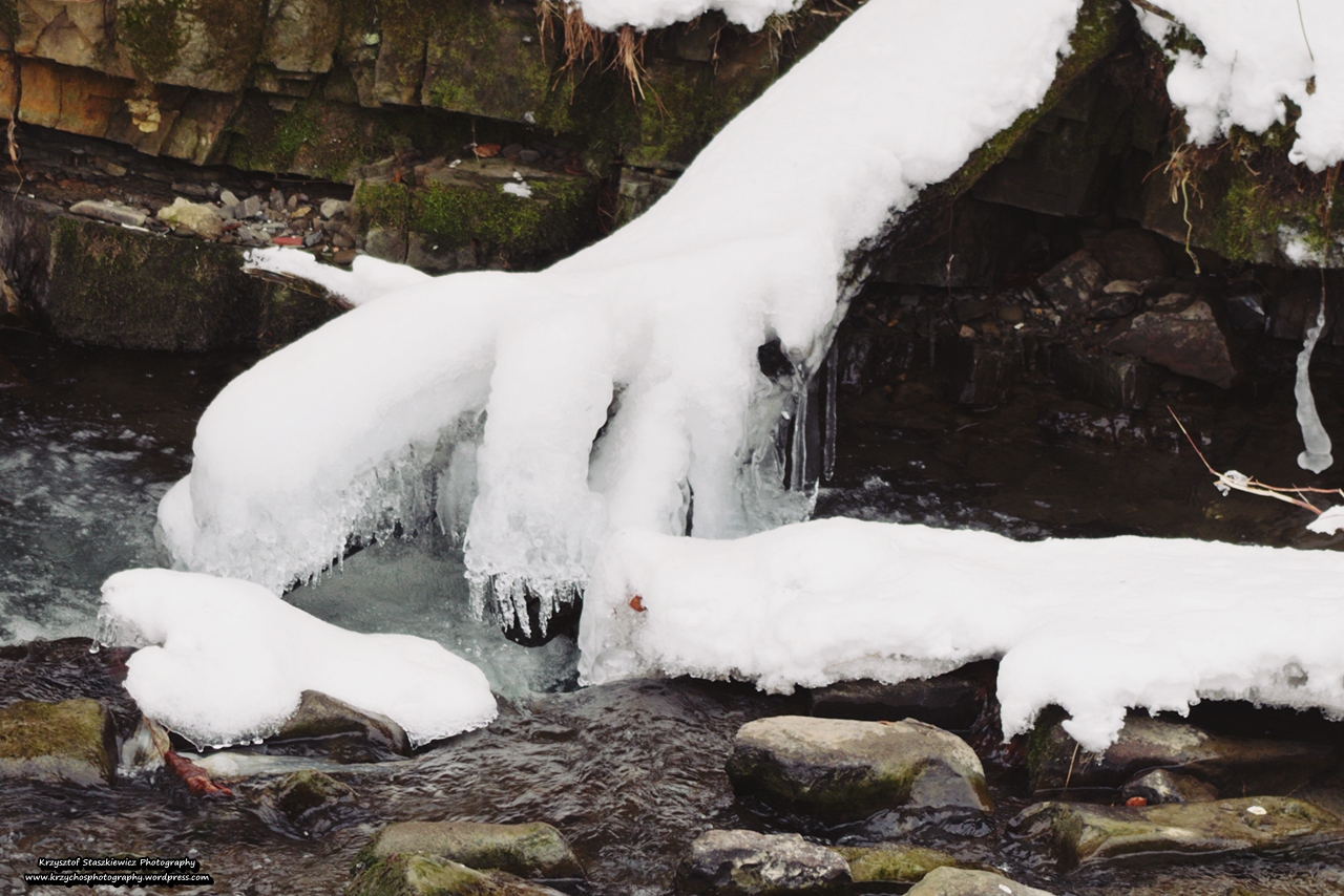 Kolejny etap wędrówki polegał na przejściu z Malinowskiej Skały na Magurki. Pogoda dalej nie zachwycała, ale spektakl pod tytułem ,,ośnieżone drzewa” powodował, że niemal co chwilę przystawałem na zdjęcia. A w międzyczasie… tuż przed podejściem na Magurkę Wiślańską zaczęło się… przejaśniać. Przez chwilę czułem się jakby ktoś mi motorek przypiął do plecaka, aczkolwiek chwilę później przypomniały o sobie uda…a konkretnie lewe udo, które miało coś gorszy dzień i na którym to męczyły mnie skurcze. No nic nie ważne, ważne, że cokolwiek widać, migawki w aparatach poszły w jeszcze bardziej intensywne użycie. Bo takie chwile, to chwile ulotne (filozof się znalazł).