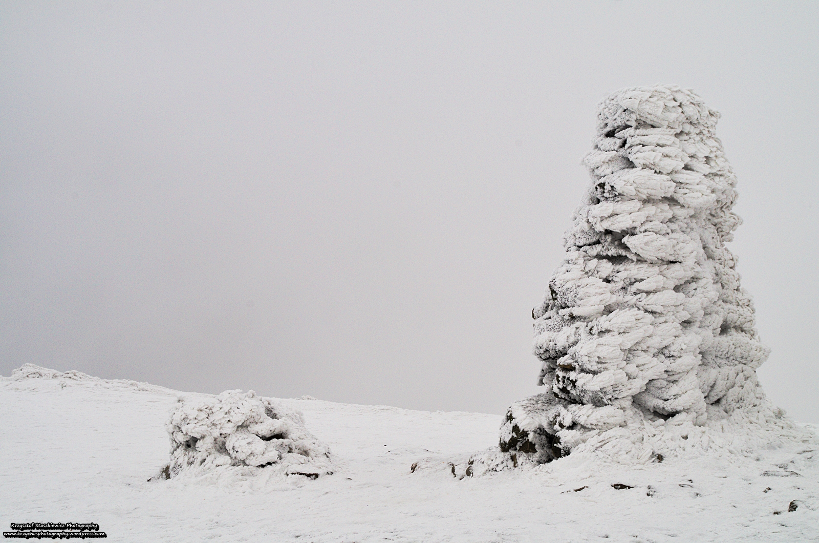 Niestety pogoda coraz bardziej się psuła, widoczność była coraz gorsza, było widać tylko Babią Górę i absolutnie nic poza nią… Trochę szkoda, aczkolwiek moją uwagę przykuła kosodrzewina, a konkretnie to co nawyczyniał z nią wiatr, śnieg i mróz, a to chyba zdjęcia oddadzą najlepiej.