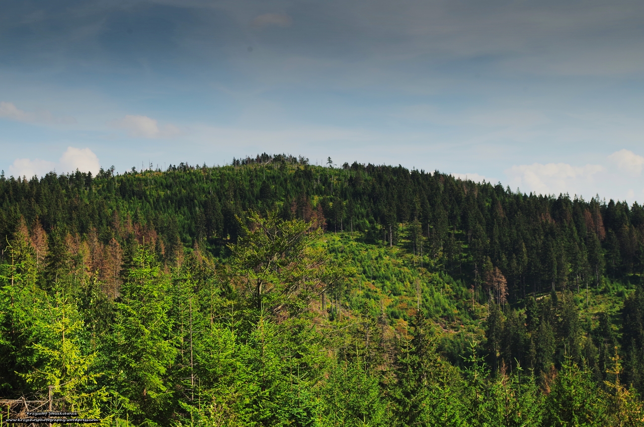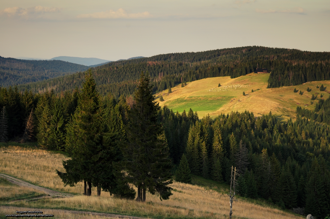 Początkowo szlak znów jest szlakiem typu spacerowego, aczkolwiek trzeba patrzyć pod nogi, bo na Hali Długiej codziennie wypasają się owce, a co to oznacza to każdy wie. Po drodze mijamy bacówkę, z której unosi się cudowny zapach, dopiero co zrobionego Oscypka, ale powstrzymałem pokusę. Po paru minutach pojawiliśmy się na szczycie Kiczora. Od tego momentu szlak zaczął mocno schodzić w dół, za co kolana nie były nam zbyt wdzięczne, no ale najważniejsze, że szlak, w dużej części prowadził przez las, co oznaczało cień.