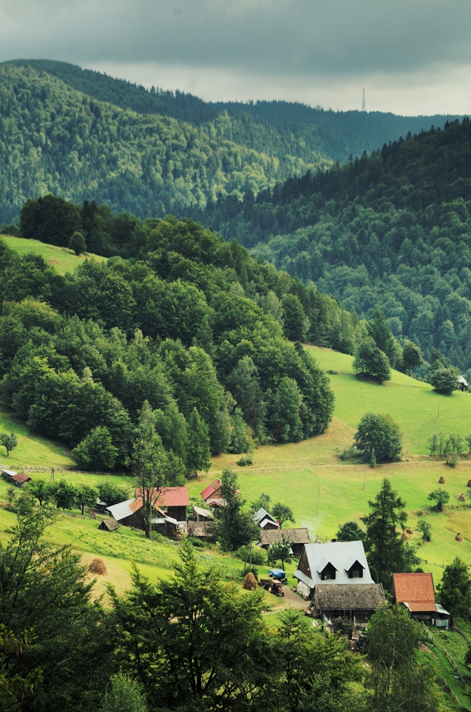 Im niżej byliśmy, tym więcej szliśmy przez polany, lub po ich skrajach, a coraz mniej lasem. Po niecałej godzinie doszliśmy do pierwszych zabudowań, od których niestety czekało nas zejście już po betonowych płytach. Aczkolwiek w dalszym ciągu widoki, rekompensowały zmęczenie.