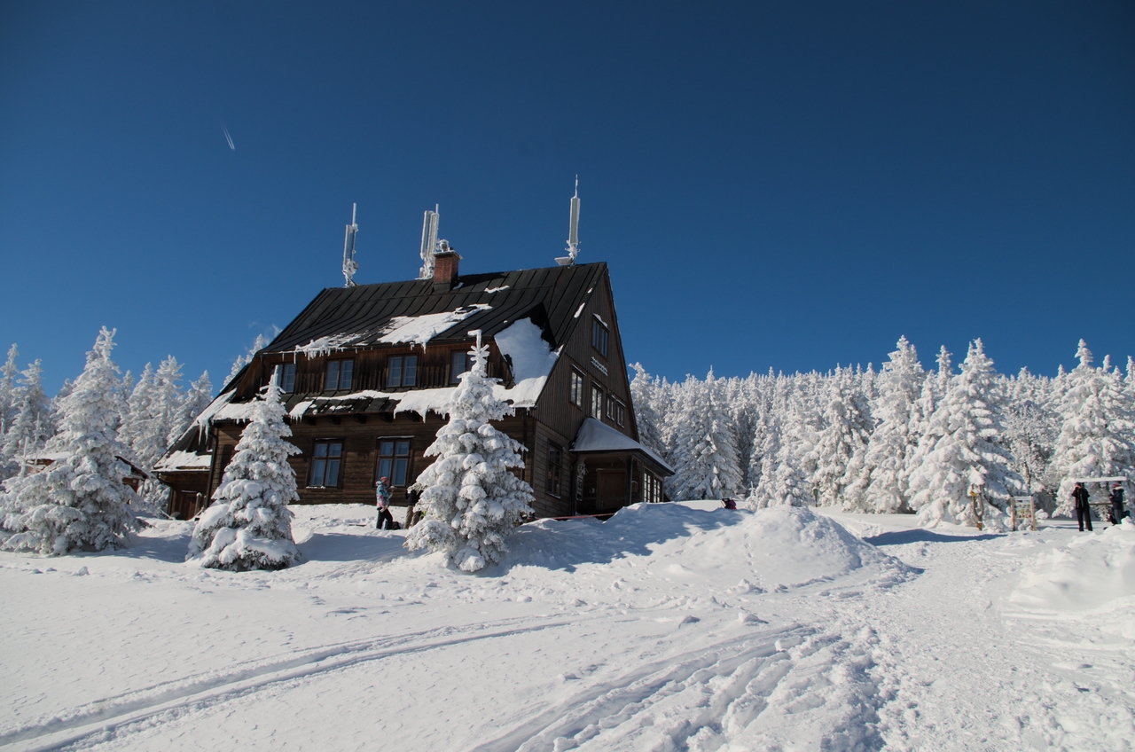 Schronisko to znajduje się we wschodniej części Równi Pod Śnieżką, w zasadzie już na jej obrzeżach, a historia tego miejsca jest na tyle ciekawa, że postanowiłem ją tutaj przytoczyć. Pierwszy budynek powstał w tym miejscu już w XVII wieku jako schronienie dla drwali i pasterzy. W 1847 roku powstało pierwsze schronisko po Śląskiej stronie przełęczy (po stronie czeskiej, wtedy habsburskiej stało już schronisko Obri Bouda.) W 1888 roku śląskie schronisko spłonęło, prawdopodobnie zostało podpalone.