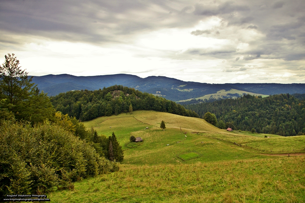 Bacówka to rzecz jasna nie jedyny powód dla którego odzyskuje się siły po tym podejściu, kolejną rzeczą jest piękny widok na Tatry, jaki roztacza się po obejściu Wysokiego Wierchu (na sam szczyt nie ma szlaku, ale jeżeli jest ładna pogoda i chmury nie zasłaniają Tatr, to warto wyjść na szczyt po ścieżce jaka jest wydeptana od strony Durbaszki), niestety co prawda Tatry było widać, ale widać też było zapowiadające się zmiany w pogodzie, bo szczyty były już otoczone ciemnymi chmurami, przesuwającymi się nad Pieniny.