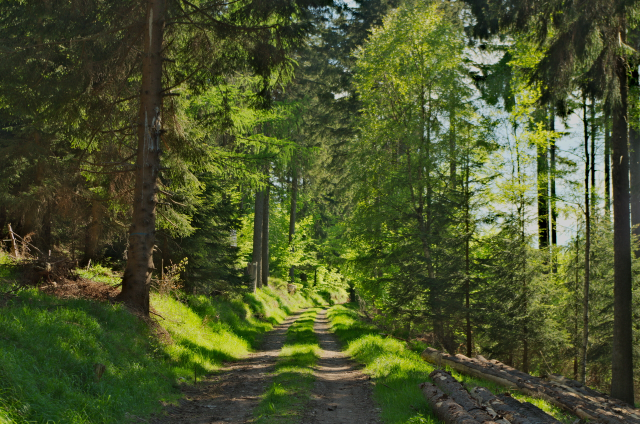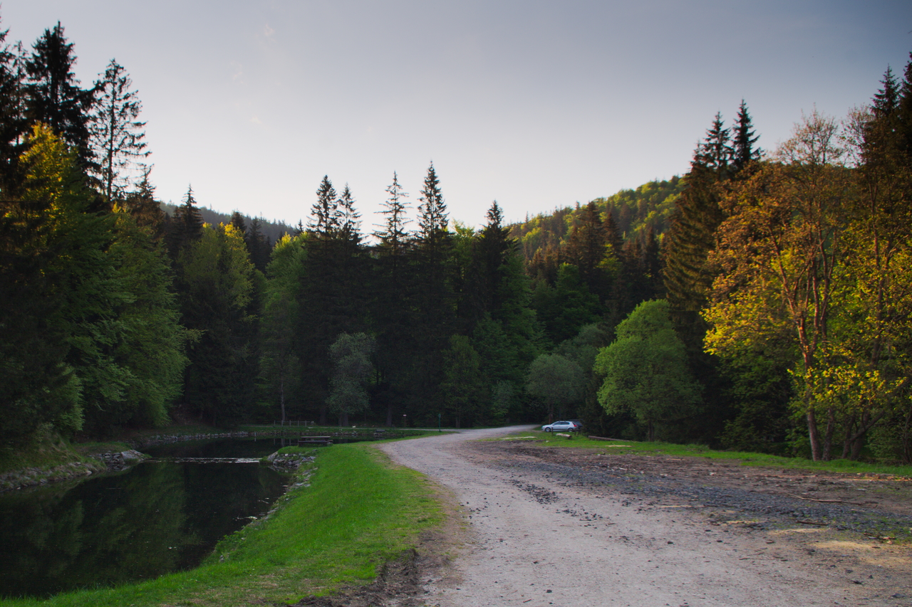 Idąc tak tym lasem, robiąc kolejne metry w góry zauważyliśmy pewną rzecz. Mianowicie las, przez który szliśmy, miał w sobie coś, co nie jest często spotykane w Beskidach, otóż był bardzo zielony, nie tylko drzewa tryskały soczystą zielenią, ale również trawa, która była na całej połaci (w Beskidach często są to krzaki albo sama ściółka). Albo mnie tak tylko się wydawało po całym tygodniu nocek, ale jak się okazało, również partner, który wybrał się ze mną na wycieczkę, zauważył ten fakt.