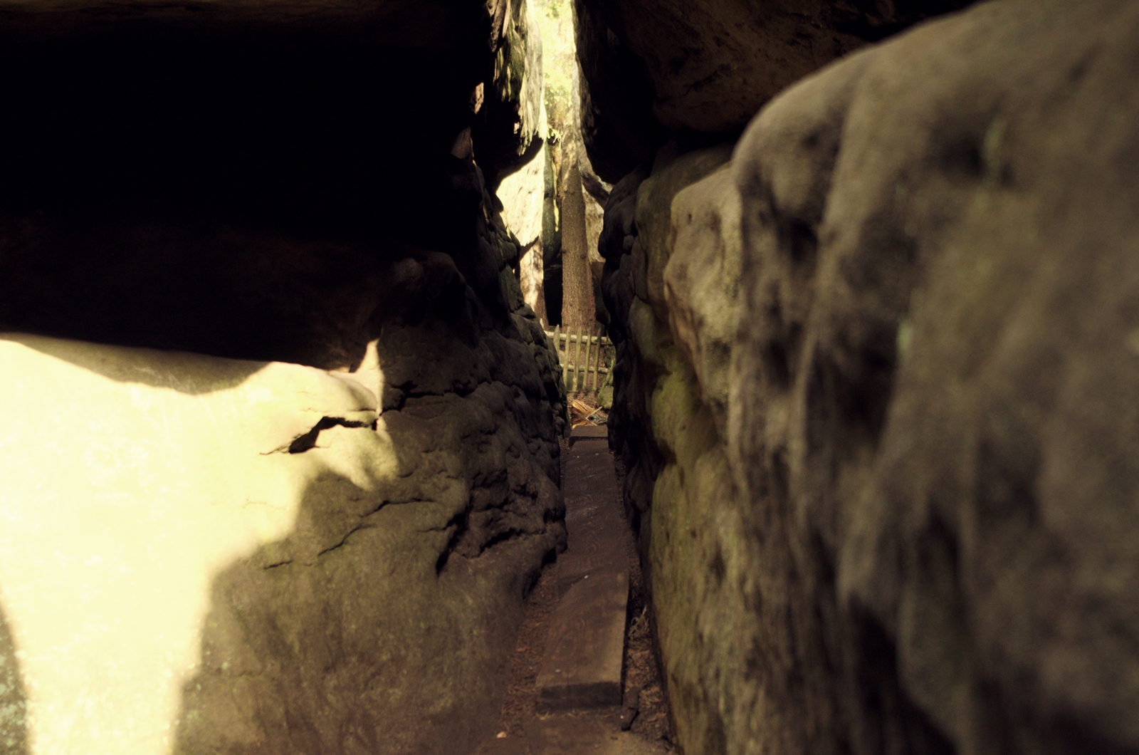 Szlak po Błędnych Skałach był bardzo miłym przerywnikiem podczas tego Rajdu. Był to typowy spokojny spacer między pięknymi, ciekawymi formami skalnymi, które tworzą nie tylko klimat jak z bajki, to jeszcze do tego stworzyły bardzo wąskie i niskie przejścia, podczas których, w głowie dziękowaliśmy kierownikowi schroniska, że mogliśmy zostawić te plecaki w schronisku. No ale wszystko co piękne, kiedyś się musi skończyć. Po przejściu szlaku, odpoczęliśmy chwilę i ruszyliśmy do Pasterki, pokonując po drodze baaardzo ciężkie podejście. Po dojściu do schroniska, znieśliśmy plecaki ze strychu, napiliśmy się piwka i ruszyliśmy do Radkowa.