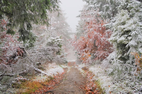 Pierwszy dzień, gdy szliśmy z Sobolówki na Wielką Racze był typowo jesienny. Drugi dzień, gdy schodziliśmy do Zwardonia już nieco bardziej zimowy.