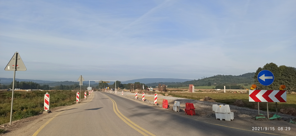 Pierwsza godzina marszu była skrajnie nudna, bowiem przez 3,5km szlak prowadzi dość ruchliwą drogą. Na domiar złego przecina fragment budowanej trasy S3.