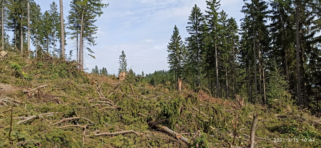 Chwilę później zaskoczyła nas kolejna rzecz, mianowicie na szlaku, prawdopodobnie, odbywała się niedawno ścinka drzew, natomiast szlak nie został uprzątnięty i wyglądał jak na zdjęciu.