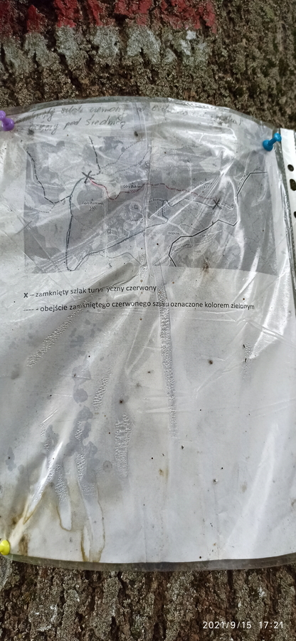 Tymczasem szlak zaczął prowadzić bardzo specyficznym terenem na Górę Bukową i dalej do Bukowca. Niemałym zaskoczeniem w Bukowcu była przybita do drzewa kartka z informacją, że fragment GSS przez Górę Bukową jest zamknięty i trzeba zrobić spore obejście przez Kowary.