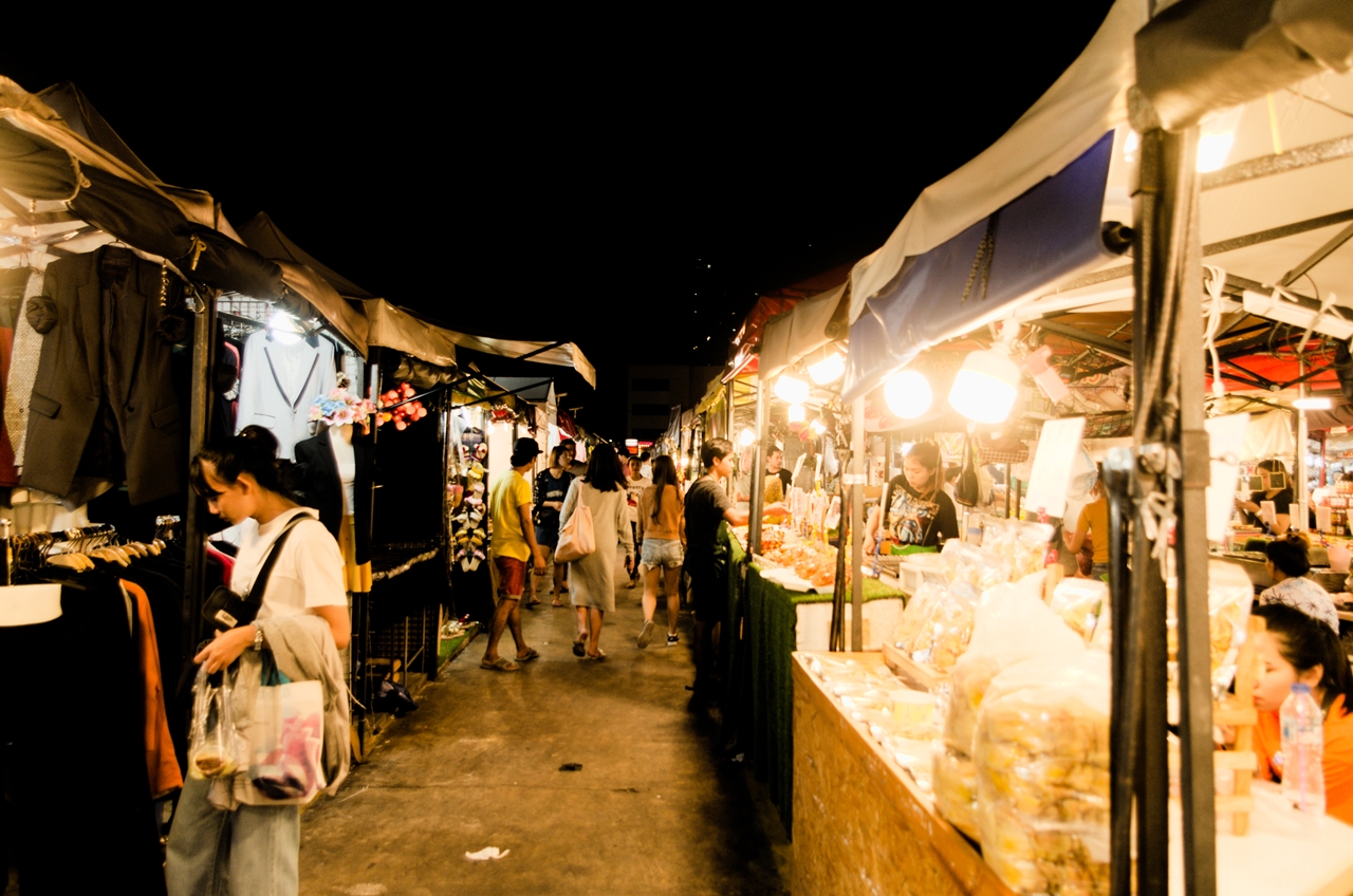 - Nocny market – Ile osób, tyle opinii na temat tego, który z nocnych marketów jest najlepszy. Mnie ciężko ocenić, bo dwukrotnie byłem na Ratchada Rot Fai Train Night Market. Nigdy nie żałowałem, zawsze sobie pojadłem ciekawych rzeczy. W szczególności polecam tajskie naleśniczki, coś w rodzaju korpusów z owocami morza, różne malutkie szaszłyczki, wodę ze świeżo otwieranego kokosa i shake owocowego.