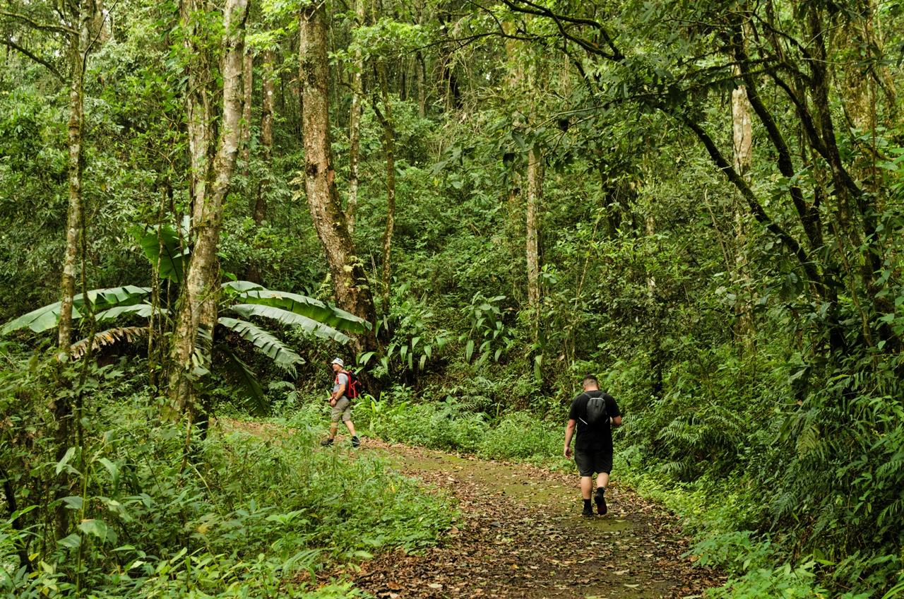 Trzeba przyznać, że trekking po dżungli to świetne przeżycie, zupełnie inne dźwięki, zupełnie inny zapach, zupełnie inny klimat niż nasze polskie lasy. Choć też nie ma co ukrywać, że samo Doi Pui to nie jest jakiś wybitny szczyt. Wznosi się on na wysokość 1600m npm no i jest w lesie. Ale że akurat cała nasza trójka lubi góry, to stwierdziliśmy, że czemu nie. Schodząc z góry znaleźliśmy właściwy szlak, mijając przy tym po drodze ruiny świątyni. No i cóż, tutaj polskie szlaki wypadają dużo lepiej, zarówno pod względem utrzymania jak i oznaczeń.