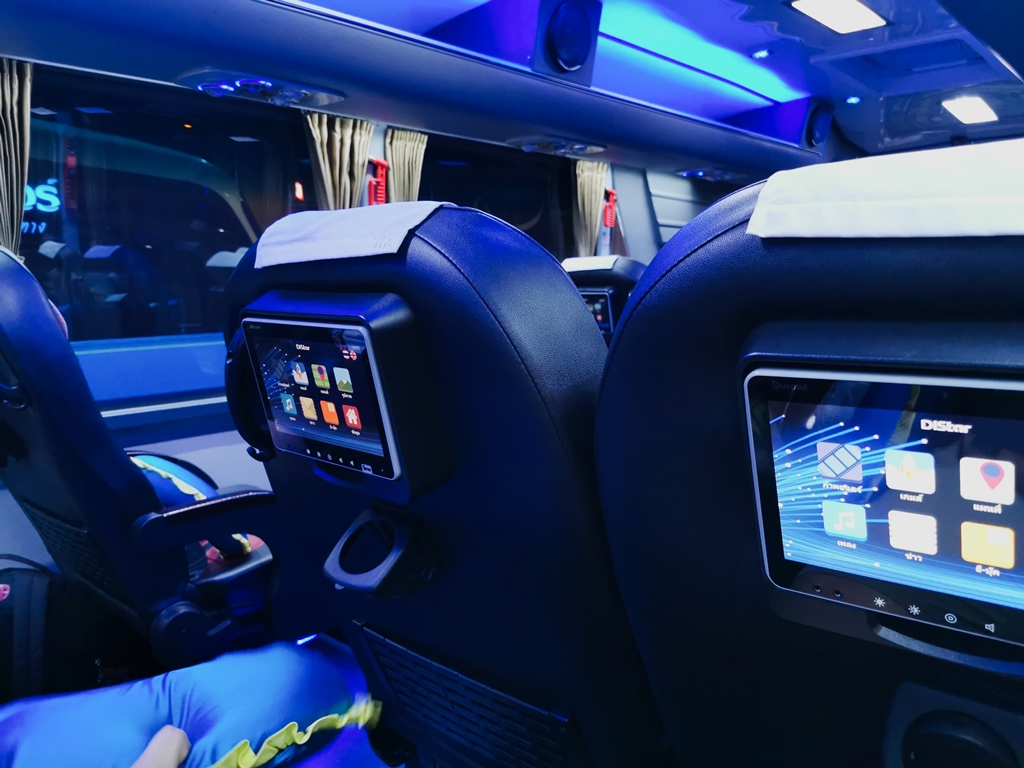 Za to szał był, gdy podjechał nasz autokar. Ze względu na niewielką różnicę cen (jakieś 5USD), postanowiliśmy, że do Chiang Mai pojedziemy autokarem klasy VIP-24. Autokar ten mieści zaledwie 24 osoby, każdy posiada system rozrywki pokładowej, otrzymuje darmowe przekąski, ale dla mnie najważniejszym był fakt, że fotele rozkładają się prawie do pozycji leżącej, a możliwość wygodnego wyspania się była dla mnie bardzo istotna, bo zaraz etap związany ze zwiedzaniem północnej części Tajlandii który miał być dość intensywny, a zwiedzanie zaczynało się tuż po przyjeździe do tego miasta.