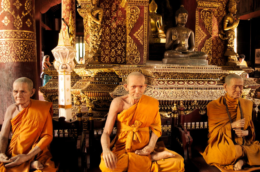 Zwiedzając świątynie trzeba było przyznać, że mają niemały rozmach, przykładowo Wat Phra Singh mogłaby spokojnie rywalizować ze świątyniami z Bangkoku, zarówno pod względem przepychu jak i dbałości o detale. Chociaż i tak największe wrażenie zrobiły na mnie figury mnichów, które były wykonane z wosku. Dokładność wykonania tych figur była niezwykła. Do tego stopnia, że było widać ich żyły, a nawet delikatne blizny. Z kolei Wat Chedi Luang bardzo mocno przypominał mi świątynie w Ayutthaya. Najstarsza świątynia w Chiang Mai, czyli Wat Chiang Man wyróżniała się licznymi malowidłami na ścianach.