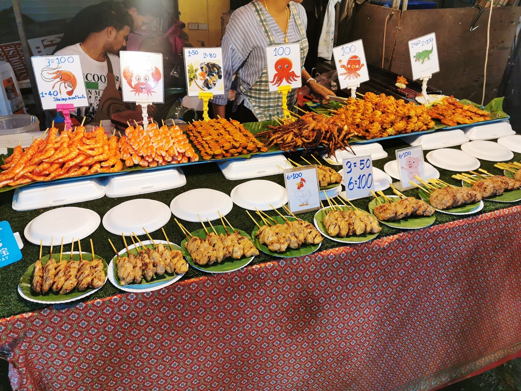 Gdy dotarliśmy z powrotem do hotelu ogarnęliśmy się, po czym wyszliśmy ponownie na miasto. Tym razem dzięki uprzejmości Pani z hotelu trafiliśmy na niedzielny market, gdzie można bardzo tanio i smacznie zjeść (Pad Thai za 2PLN, sushi za 1-2PLN za kawałek), kupić wszystko od najtańszych ,,badziewi” do dzieł sztuki, a także skorzystać z masażu.