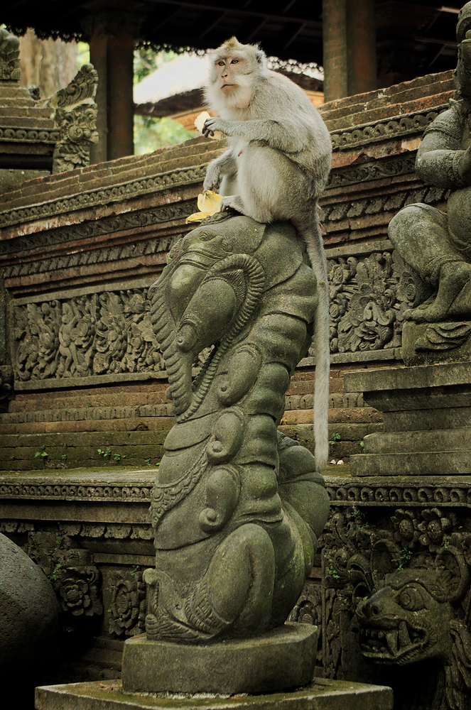 W tym słynnym lesie żyje około 1300 makaków balijskich. Praktycznie na każdym kroku można było spotkać te zwierzęta. Niektóre były bardziej skłonne do spotkania, inne nieco mniej. Jedne pozowały do zdjęć, inne tylko czaiły się jak dobrać się do jedzenia, które jest w plecakach.