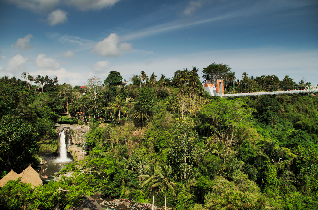Ostatnim przystankiem był wodospad Tegenungan. Jest to niewielki wodospad, który jako jedyny na Bali znajduje się nie w górach, a już na nizinach. Sam wodospad może i nie robi wielkiego szału, ale za to panorama, podczas schodzenia do niego, jest wprost oszałamiająca.
