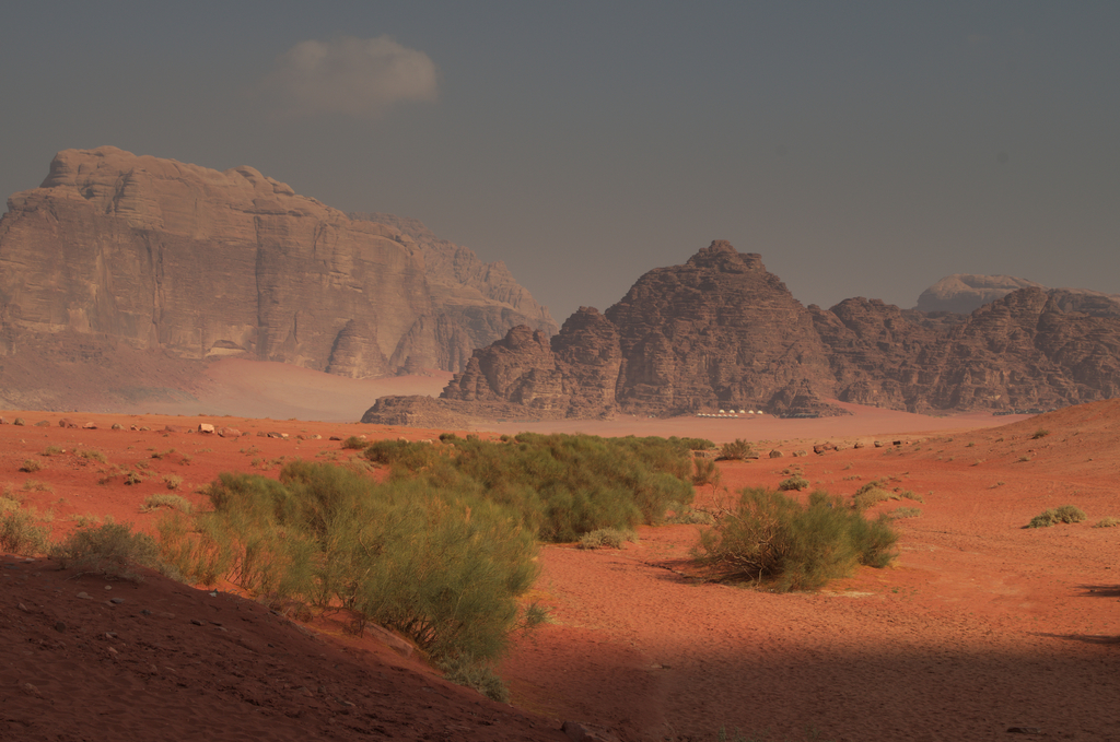 A skoro mowa o kempingu. Na pustyni Wadi Rum jest cała masa kempingów. Nasz kemping był tak położony, że nie widzieliśmy pozostałych, mimo, że były one niedaleko nas. Dodatkowo nasz kemping był bardzo kameralny, pięć namiotów, jeden duży pełniący rolę świetlicy i jadalni oraz prysznic i toaleta. Był jeszcze jeden duży namiot, ale nie dopytywałem co to jest, może po prostu jakby była jakaś duża grupa.