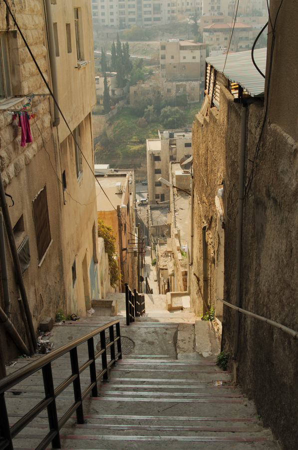 Kolejnym celem naszego zwiedzania była Cytadela. By do niej dotrzeć musieliśmy pokonać trochę różnicy wysokości. Zakłada się, że Amman położony jest na wysokości około 800m n.p.m. jednak warto zaznaczyć, że miasto to obfituje we wzgórza. Różnice wysokości na niewielkim dystansie są tak znaczące, że drogi muszą robić zawijasy, a piesze arterie poprowadzone są schodami.