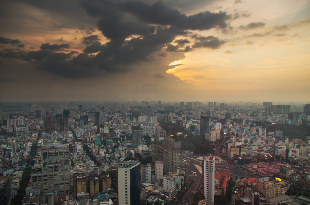 Warto przyjść tutaj pod wieczór, żeby zobaczyć Sajgon z góry zarówno w trakcie dnia jak i po zmroku. Może akurat trafi Ci się również ładny zachód słońca… albo i nie.