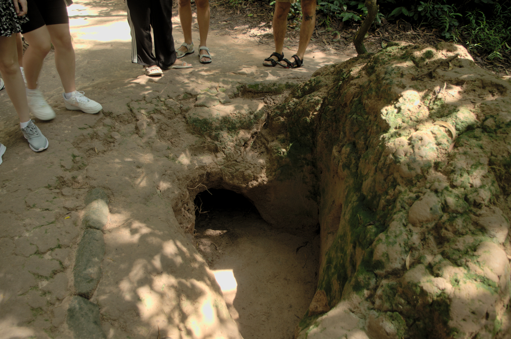 Parę słów o historii tych tuneli. Jest to system podziemnych korytarzy, który łączył przedmieścia Sajgonu z granicą Kambodży. Pierwsze korytarze zostały wybudowane w trakcie trwania I Wojny Indochińskiej. Zbudowano ich wtedy około 50km. Kolejne wybudowano podczas II Wojny Indochińskiej. Szacuje się, że w szczytowym okresie łączna długość podziemnych korytarzy liczyła 250km. Były one wykorzystywane jako szlaki zaopatrzeniowe z Kambodży oraz przez partyzantów Wietkongu, którzy walczyli przeciwko armii Południowego Wietnamu i ich sojusznikom, w tym USA.