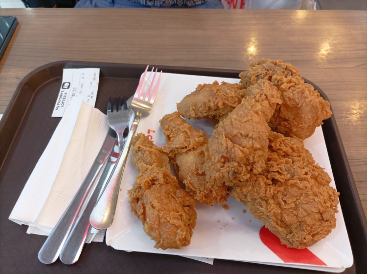 Miałem okazję wejść do hamerykańskich fast-foodów, ale nie znalazłem tam nic ciekawego do spróbowania. Natomiast dość ciekawa jest wietnamska podróbka KFC, która nazywa się Lotteria. Nie wiem, czy chodzi o loterię na zasadzie, że albo wylądujesz z biegunką, albo bez, natomiast ja nie miałem żadnych kłopotów, a nawet śmiem twierdzić, że kurczaki tam podawane były smaczniejsze niż w oryginale.