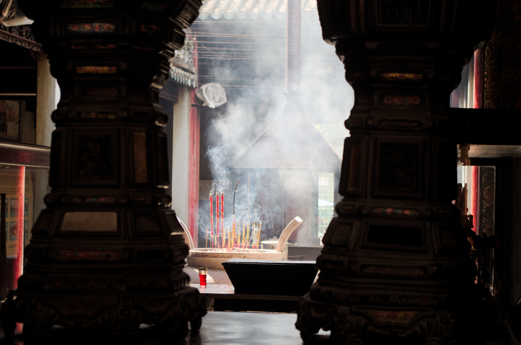 Po wejściu do świątyni nasze nozdrza wypełnił zapach kadzideł, czyli jakże charakterystycznego elementu, który towarzyszy każdej podróży do Azji. Tylko, że tutaj tych kadzideł było wyjątkowo dużo, można powiedzieć, że szło się wręcz w takiej małej zadymce. Niesamowicie dodawało to klimatu temu miejscu. Pagoda nie jest zbyt pokaźnych rozmiarów zatem zwiedzanie nie zajmuje zbyt wiele czasu. Niemniej jednak uważam, że naprawdę warto tutaj się wybrać, bo to miejsce ma coś w sobie.