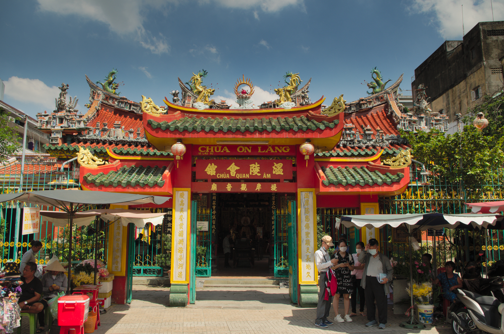 Pierwszą z nich była pagoda Quan Am jest to Pagoda, która została wybudowana w 1740 roku. Podzielona jest na dwie części, przecięte ulicą. Pierwsza część to dziedziniec ze sztucznym stawem i ogrodem. Druga część to przepiękna świątynia. Nie jest jednak ona poświęcona jednemu bóstwu, a wielu Bogom chińskiej religii ludowej, taoizmu i buddyzmu i faktycznie ilość ołtarzyków poświęconych różnym Bóstwom jest niemała i wyróżnia tą świątynie od innych.