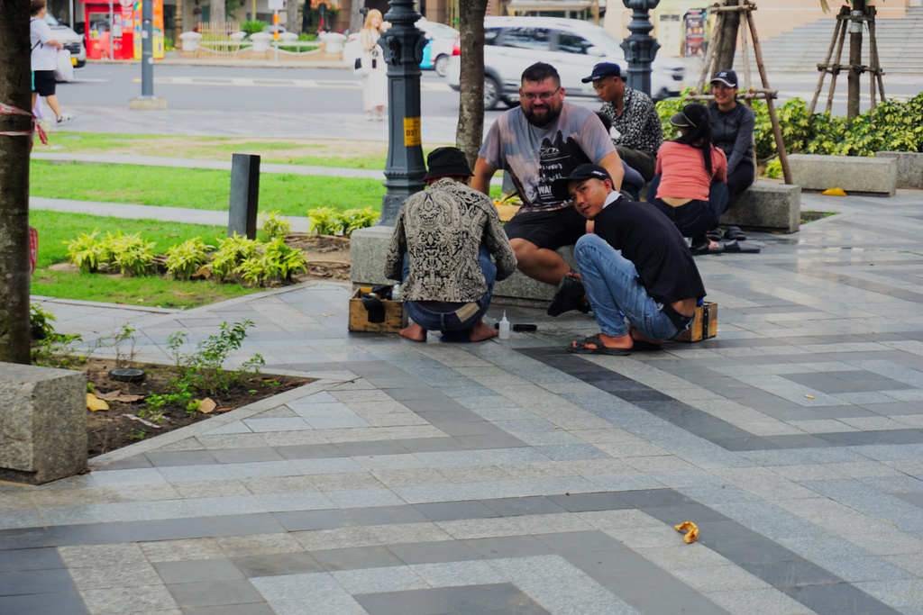 Moja zaduma została przerwana, gdy zobaczyłem co się dzieje z jednym z uczestników wyjazdu. Bowiem Wietnamczycy porwali nam Byka. Oczywiście niedosłownie. Po prostu zaprosili go na krzesełko na czyszczenie butów… Oczywiście za (nie)odpowiednią opłatą. Naprawdę polecam uważać na takich typów, bo to łatwy sposób na stracenie sporej sumki pieniędzy, a tacy mili Panie lub Panowie czekają na Was przy każdej atrakcji turystycznej.