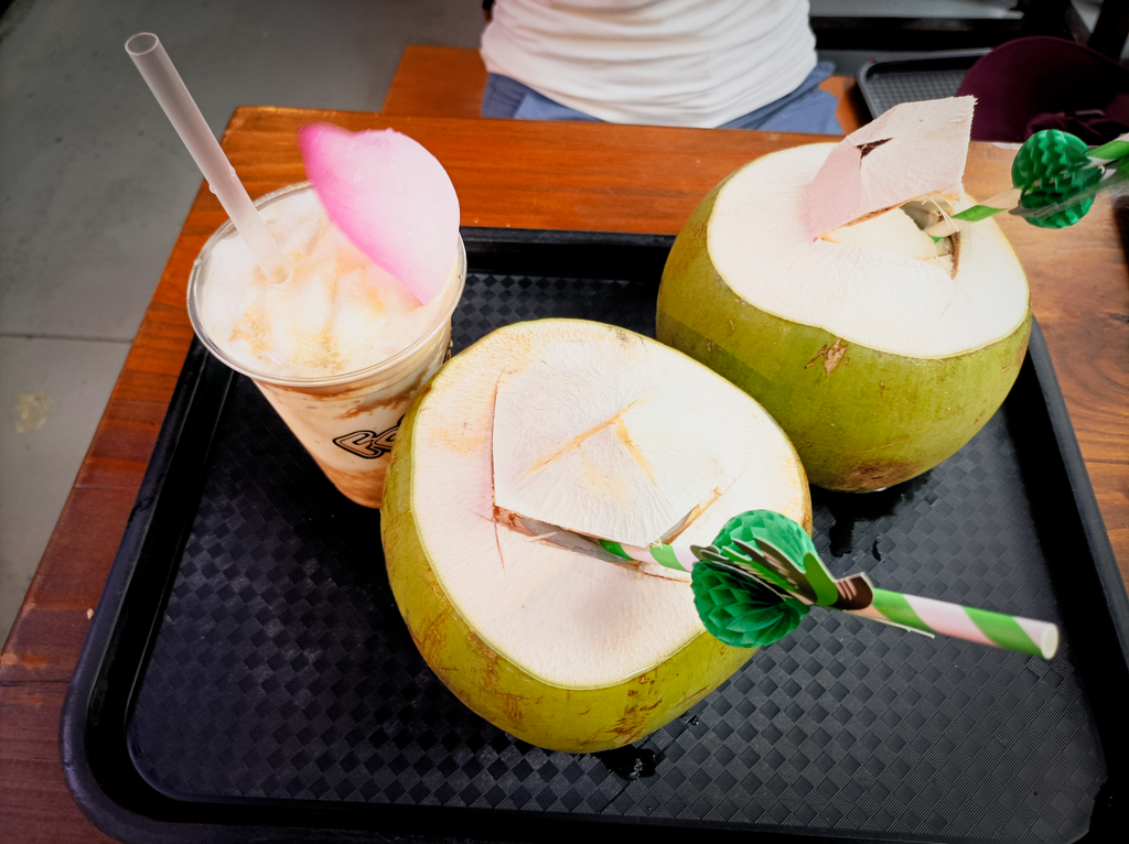 Podczas zwiedzania świątyni zaczęło nas dość mocno suszyć, więc gdy tylko zobaczyliśmy, że przed świątynią jest Pani, która sprzedaje wodę kokosową, decyzja nie mogła być inna niż ta, że czas na przerwę. Zostaliśmy co najmniej lekko zaskoczeni tym kokosem. Nie wiem czy tam jakaś magia się działa, ale miałem wrażenie, że pomimo picia, wody tej nie ubywa. Serio był to chyba największy kokos z jakiego piłem wodę. Z drugiej strony to też dobrze, bo woda kokosowa to naturalny izotonik i skarbnica witamin i minerałów. Ponadto orzeźwia i gasi pragnienie, co przy upale w okolicy 40st jest wręcz zbawienne. Po nawodnieniu ruszyliśmy dalej w kierunku Chinatown.
