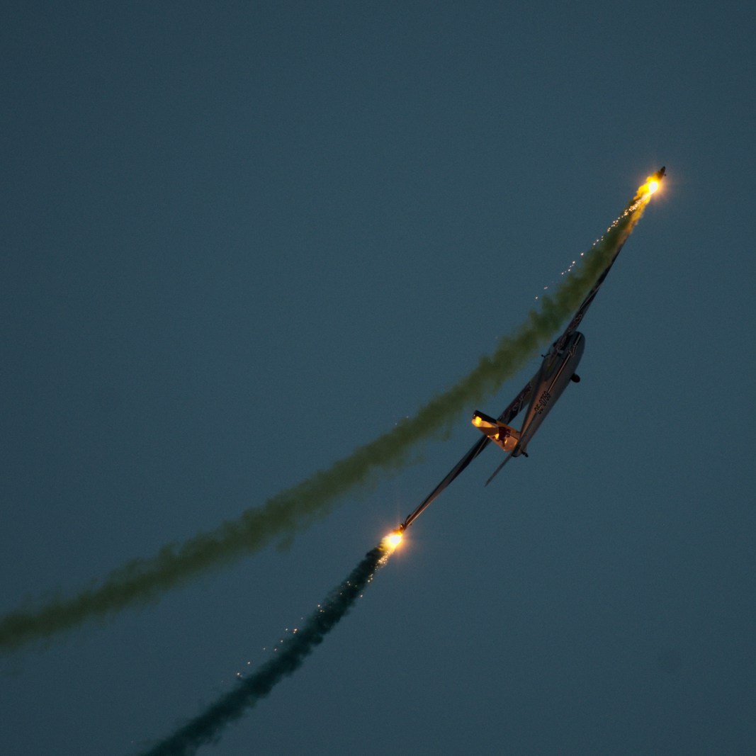 Druga część Airshow była częścią, podczas której większość zespołów ponownie wykonała swój pokaz, jednak tym razem z użyciem materiałów pirotechnicznych. Na niebie nie pokazały się wszystkie zespoły, za to pojawiły się takie perełki jak F-16, Herkules, Super Puma oraz Łukasz Czepiela, który oprócz swojego pokazu Solo, wystąpił również w formacji The Flying Bulls. Pokazy zakończył zespół Aerosparx.