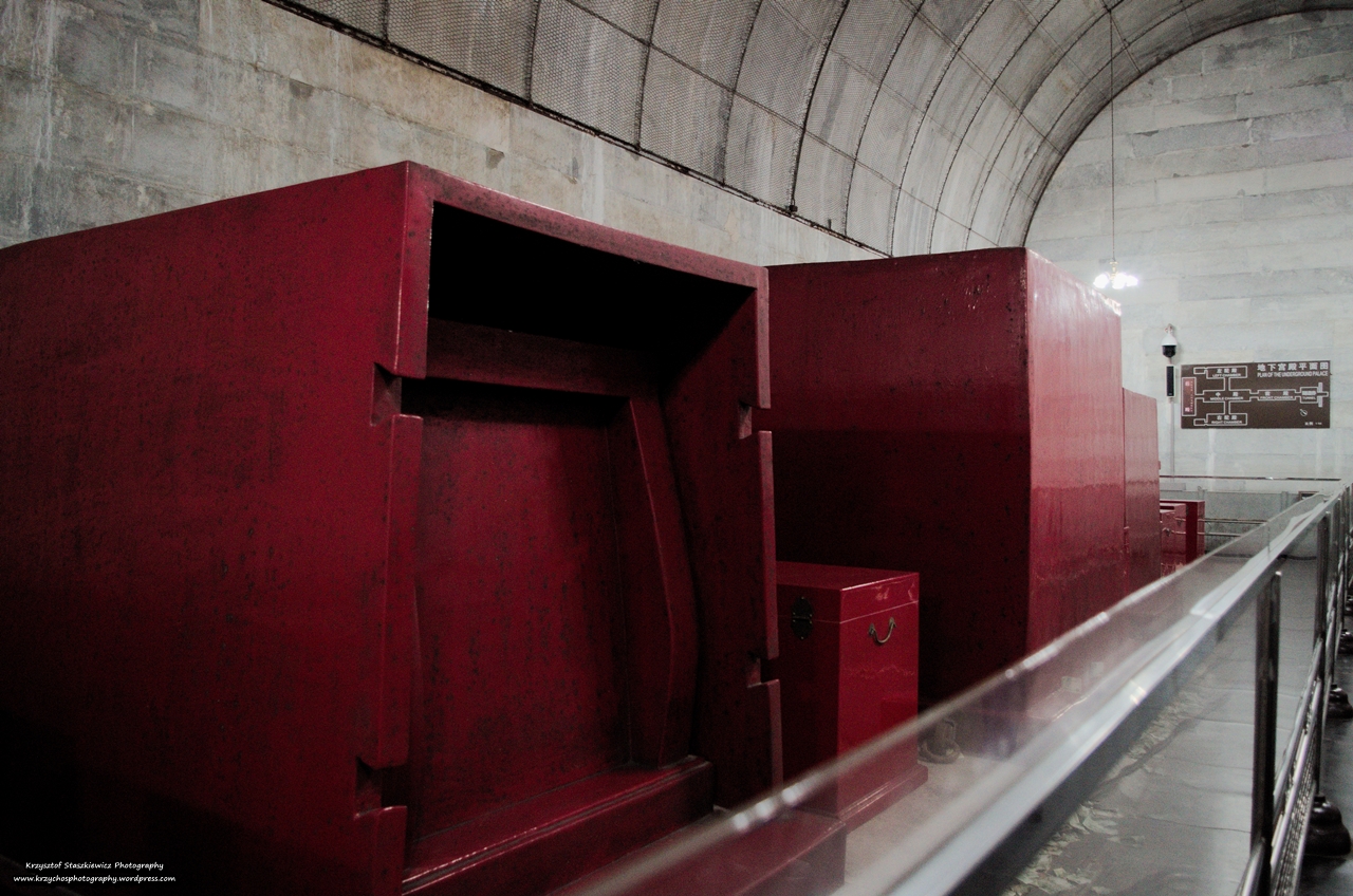 Pierwszy przystankiem była jakaś fabryka kamieni, gdzie zobaczyliśmy jak pracują dwie osoby przy obróbce tych kamieni, a następnie chyba z 40min spędziliśmy w sklepie, gdzie można było kupić (za chorą cenę) pamiątki stworzone z tych kamieni. Nie polecam. Kolejny przystanek na naszej wycieczce to Groby Dynastii Ming, a konkretnie Grobowiec cesarza Wanli. Niestety naziemne zabudowania były dwukrotnie niszczone, najpierw przez najazd Mandżurów, a następnie podczas Powstania Bokserów, tak więc obecnie bardzo niewiele elementów naziemnych można zobaczyć. Sam grobowiec położony jest 27m pod ziemną. Ogólnie nie jest to zbyt ciekawa atrakcja, raczej taka ciekawostka w drodze do głównego punktu wyjazdu, a był nim Wielki Mur Chiński.