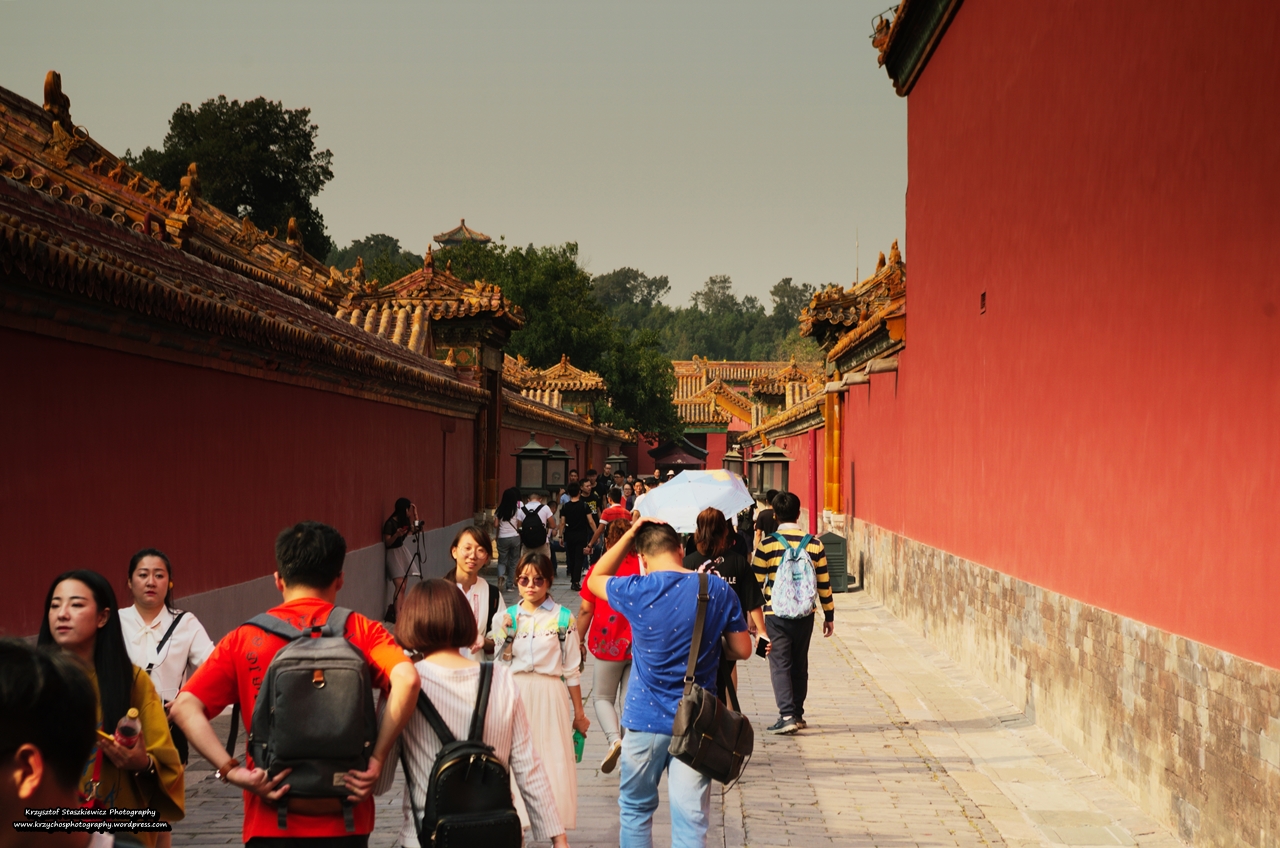Chwilę później przeszliśmy przez Bramę Niebiańskiej Czystości, która wprowadziła nas do dziedzińca wewnętrznego. To miejsce, w którym mógł przebywać już wyłącznie cesarz, jego rodzina i konkubiny. W zasadzie to nie widzę sensu rozpisywać się, ogólnie jest to cały kompleks pawilonów, pałacyków, w których, gdyby nie mapa, naprawdę można się zdrowo zaplątać. Swego rodzaju ciekawostką jest fakt, że w jednym z pawilonów, mieszkał nauczyciel angielskiego, który uczył cesarza tego języka. Szkoda, ze obecnie większość chińczyków takowego języka nie zna. Ostatnim punktem są przepiękne Carskie Ogrody. Po ich przejściu ruszyliśmy w stronę Bramy Boskiego Zwycięstwa, którą opuściliśmy Zakazane Miasto. Swoja drogą, gdy przygotowywałem się na wyjazd, trochę się dziwiłem przewodnikom i różnym blogom, na których autorzy pisali, że na zwiedzanie Zakazanego Miasta trzeba poświęcić parę godzin. Cóż, po jego zwiedzeniu, również tak twierdzę, a zwłaszcza, że nie zwiedziłem każdego zakamarka tego pałacu.