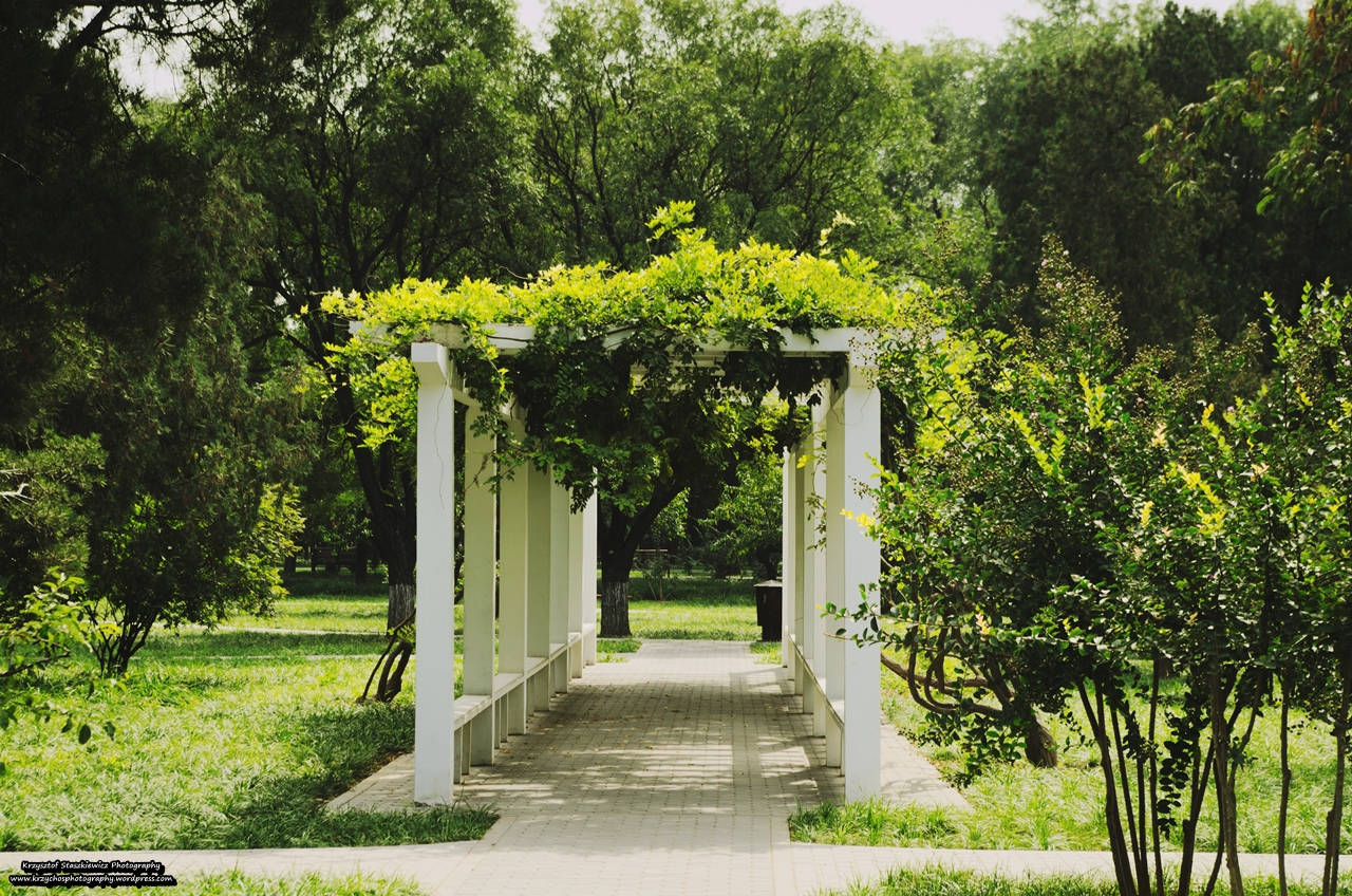 Po zobaczeniu wszyscy turyści ruszają Czerwonym Mostem w kierunku Cesarskiego Sklepienia Nieba, no dobra, może nie wszyscy, ale większość, większość, lecz nie my. My postanowiliśmy skierować swoje kroki do parku, tak by zobaczyć co ciekawego on kryje w sobie. Po chwili dotarliśmy do romantycznego miejsca, zwanego dalej Różanym Ogrodem, cała masa róż, w końcu jakiś ładny zapach, przebijający specyficzny ,,pekiński zapach”, miejsce tak romantyczne, że gdybym był tam z dziewczyną, to byśmy pewnie siedzieli tam dłuższą chwilę… No, ale że byłem z kumplem, to po zrobieniu kilku zdjęć ruszyliśmy dalej. Przechodząc park mijaliśmy naprawdę sporą liczbę miejscowych, którzy grali sobie w tym miejscu w karty, szachy, tańcowali, jogę uprawiali, medytowali, ogólnie odprężali się w sobotnie popołudnie.