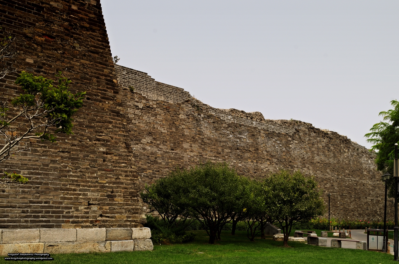 Kolejny przejazd metrem odbył się bez większego tłoku i już po chwili byliśmy na stacji, do której planowaliśmy dojechać. Po wyjściu ze stacji i przejściu paru metrów (w tym przejście przez ulicę , co w Pekinie bywa ryzykowne), nieśmiało zza drzew pojawił się nasz cel, a mianowicie mur. A raczej ruiny muru, który niegdyś otaczał Pekin. O ile samo przejście wzdłuż tego muru nie jest wybitnie ciekawe, o tyle na samym końcu czekała na nas fajna i bardzo tania atrakcja. Otóż okazało się, że na końcu jest Baszta na którą można wejść, a następnie można przejść się krótkim odcinkiem zrewitalizowanego muru. I znów szok? Gdzie się zapodziali turyści? Ano tak, znów przewodnik o tym nic nie wspomina.