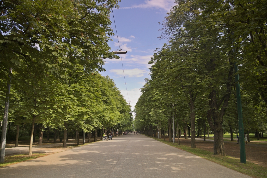 Po szybkim spacerze po raz trzeci w tym dniu pojawiliśmy się na Swedenplatzu, tym razem po to, by przejechać tramwajem do ogromnego i pięknego parku, jakim jest Prater. Park ten został udostępniony w 1766r (wcześniej były to tereny łowieckie Habsburgów) i zajmuje powierzchnie 1700ha (!!!), czyli jest większy ponad 80x od Parku Jordana. Z parku masowo korzystają turyści i mieszkańcy Wiednia i okolic. W Parku znajduje się stadion i wesołe miasteczko.